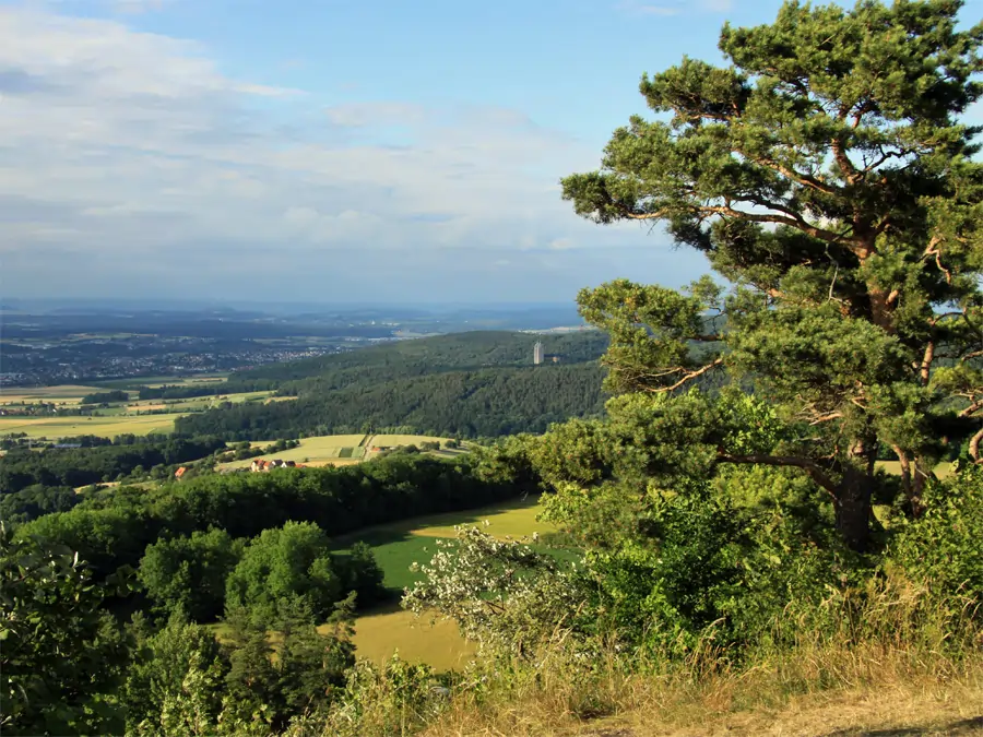 Am Westabhang sind freiliegende Felswänd, von denen man eine weite Panoramasicht über das Maintal hat sowie in das Lauter-Tal im Süden.