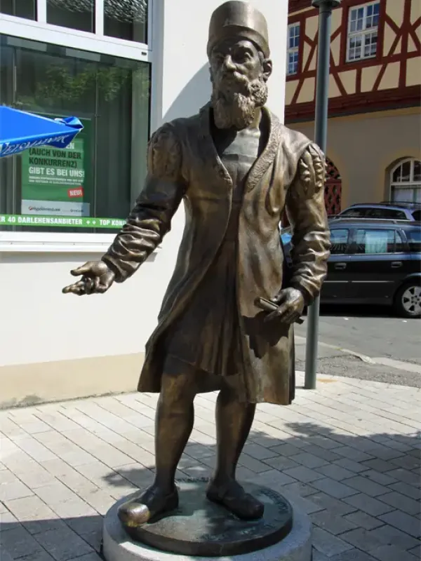 - Überlebensgroße Adam-Ries-Bronze-Skulptur in der Bahnhofstraße (errichtet 2009)