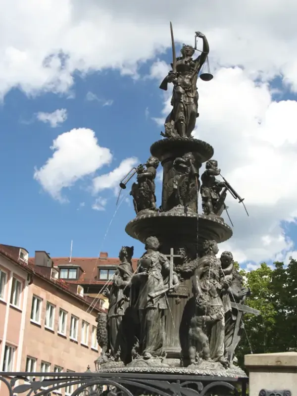 Und 1943 und 1945 gingen 80 % der Kernstadt im Bombenhagel unter. Folgerichtig wurden die Kriegsverbrecher im Nürnberger Justizpalast gerichtet. Bis in die 1970-ziger Jahre dauerte der Wiederaufbau. Einiges ging unwiederbringbar verloren.