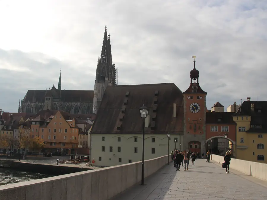 - Steinerne Brücke mit dem Brückentorturm - Das steinernde Bauwerk ist eines der Wahrzeichen von Regensburg. Der Bau begann im Jahr 1135 und somit gilt sie als die älteste erhaltene Brücke Deutschlands.