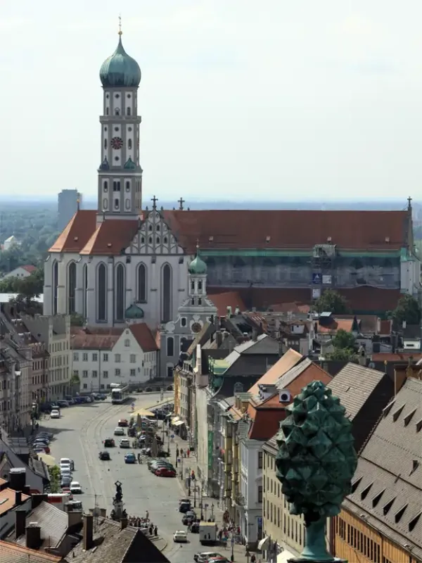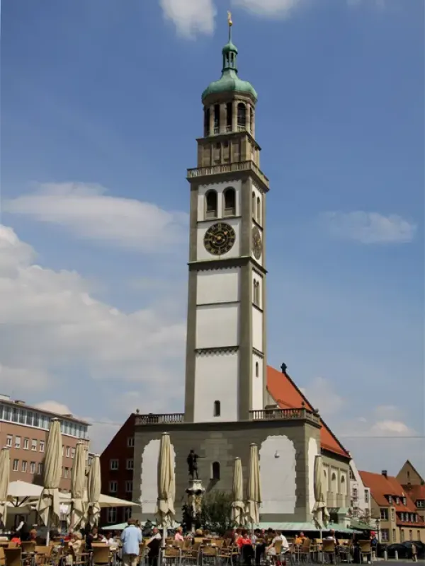 - Perlachturm neben dem Rathaus gewährt einen Rundblick über die Stadt.