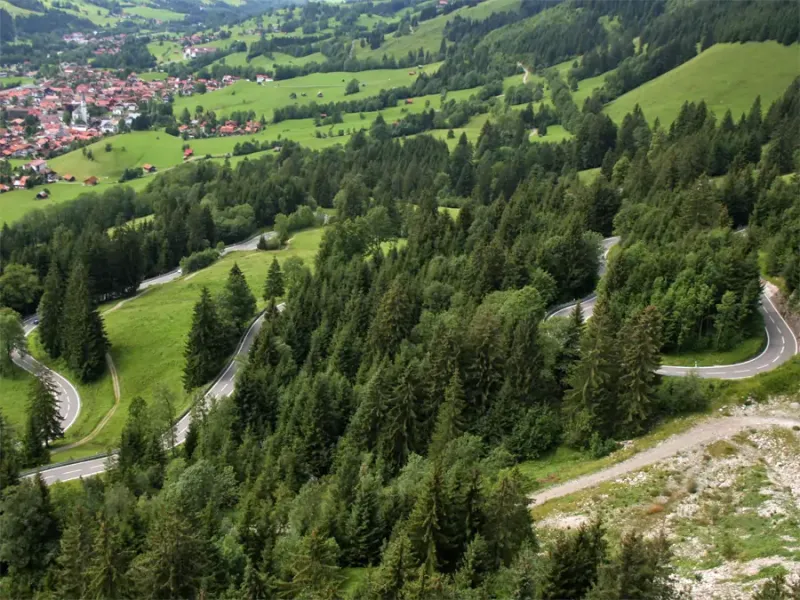 Bad Hindelang ist ein Markt im Landkreis Oberallgäu im Ostrachtal am nördlichen Ausläufer der Kalkalpen. Der Ort hatte schon in früher Zeit eine große Bedeutung als Handelsort. Durch das Ostrachtal verlief die alte Handelsstraße (eine der Salzstraßen) zwischen dem Allgäu über das Oberjoch nach dem österreichischen Tannheimer Tal und weiter ins Lechtal. Die alte Salzstraße wurde im 20. Jh. zur Bundesstraße 308 ausgebaut. Für Biker ist es "ein muss" die 107 Kehren der kurvenreichsten Straße Deutschlands auszutesten. Von einer Aussichtsplattform auf dem Oberjoch hat man einen herrlichen Weitblick nach Westen über das Tal bis zum Hohen Ifen im Kleinwalsertal.