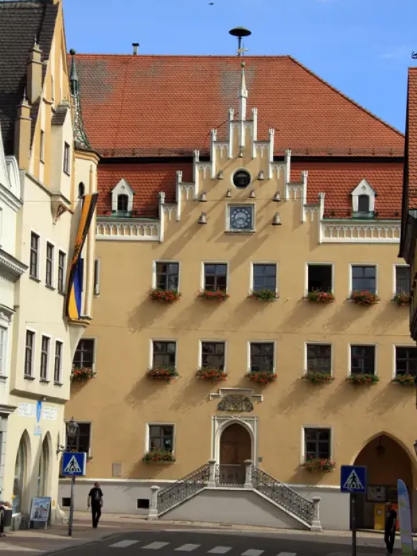 - Rathaus, erbaut ab 1236, wurde 1308 mit Quadern der abgetragenen Burg Mangoldstein vergrößert. Im 14. Jh. war das Gebäude zweimal abgebrannt. Im 16. Jh. erfolgte Aufstockung und die neogotische Restaurierung 1853.