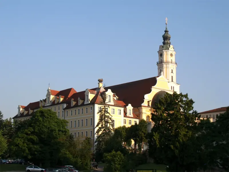 - Das Kloster Heilig Kreuz ist eine Wallfahrtskirche im Stil des Spätbarock nach Wessebrunner Schule.