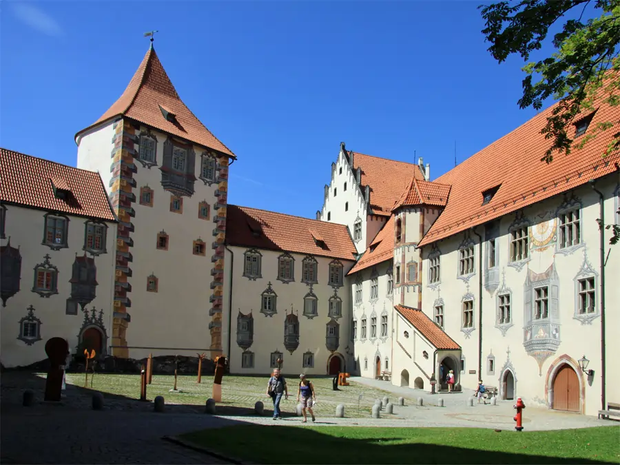 Das Hohe Schloss über der Stadt Füssen ist ein Bauwerk im gotischen Stil und war im Besitz der Bischöfe von Augsburg. Es gilt als eines der am besten erhaltenen Burganlagen aus der gotischen Zeit in Bayern.