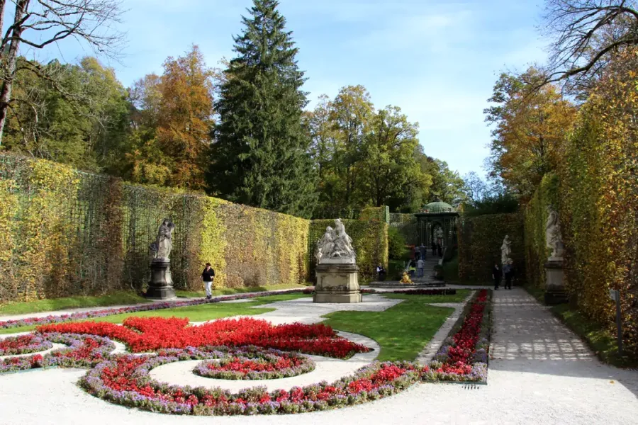 Erbaut wurde die „Königliche Villa“ im Auftrag des Königs Ludwig II. in den Jahren 1870-1886 im Baustil des Neorokoko. Neben dem Schloss stand das Königshäuschen des Königs Max II. Der Name Linderhof stammt von einem Bauernhof auf dessen Grund das Schloss errichtet wurde.