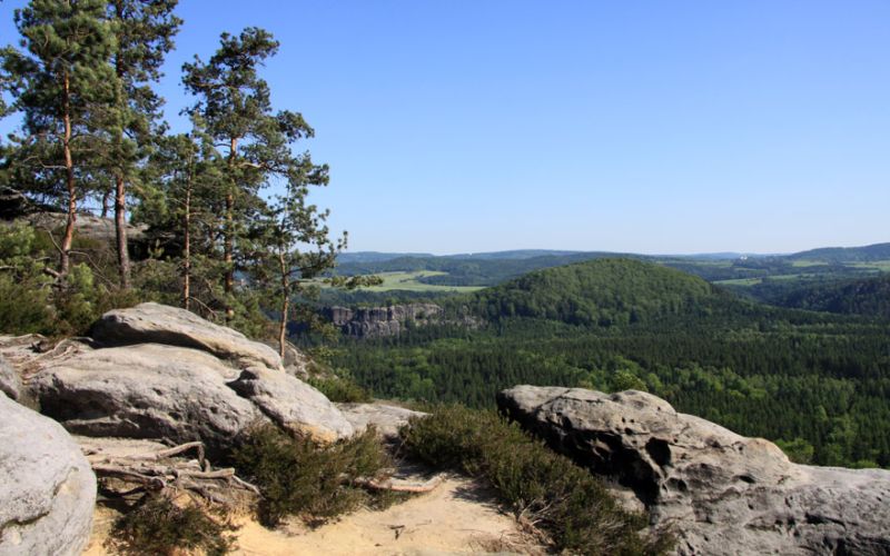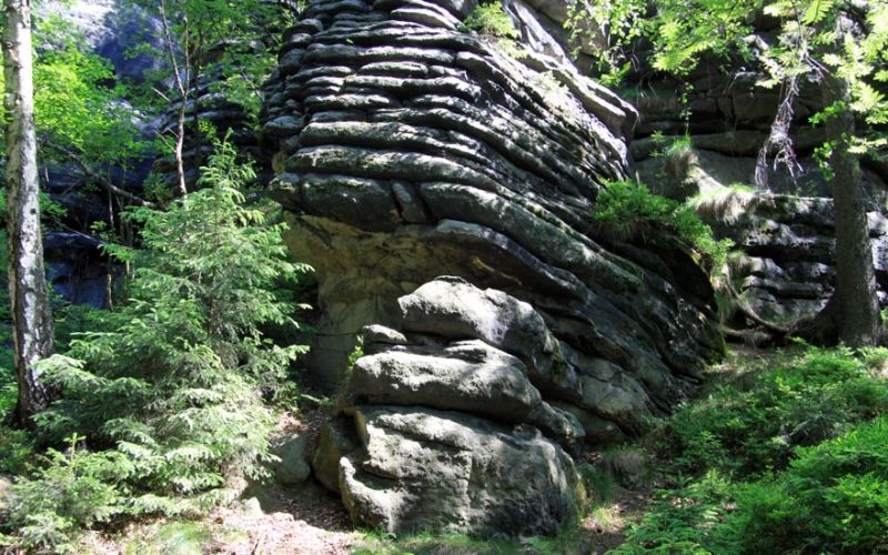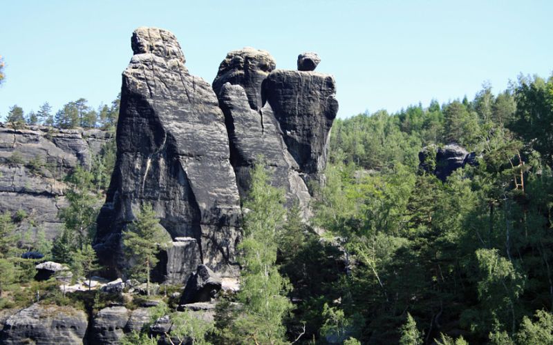 - Von Schmilka ist der Zugang zum Wandergebiet über den Heringsgrund und die Heilige Stiege.