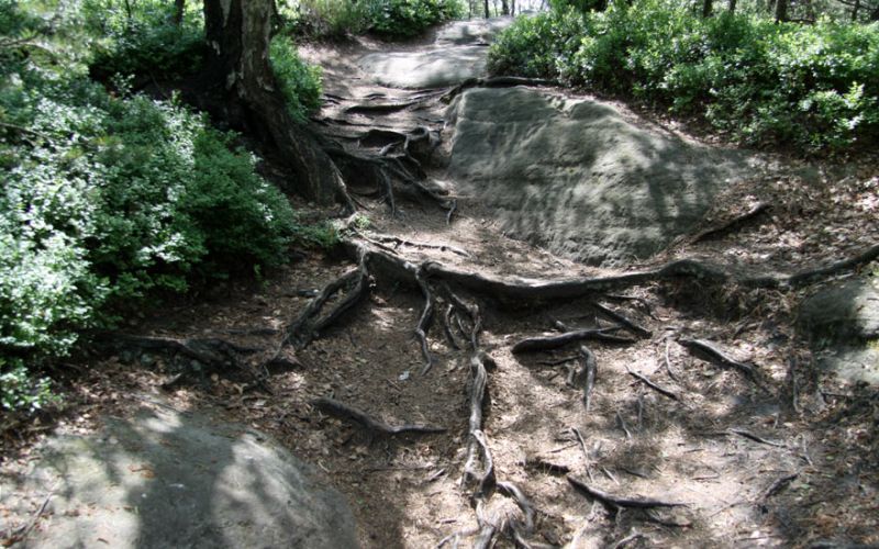 Am Satanskopf trifft er auf den Zugang vom Königsweg. Es wird weiter auf dem Affensteinweg gewandert und der Zugang zum Frienstein erreicht. Hier zweigt ein Weg zur Idagrotte ab.