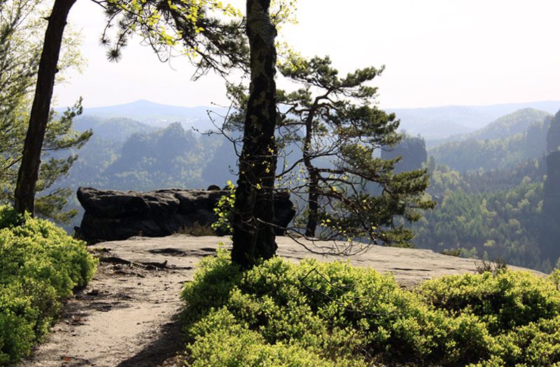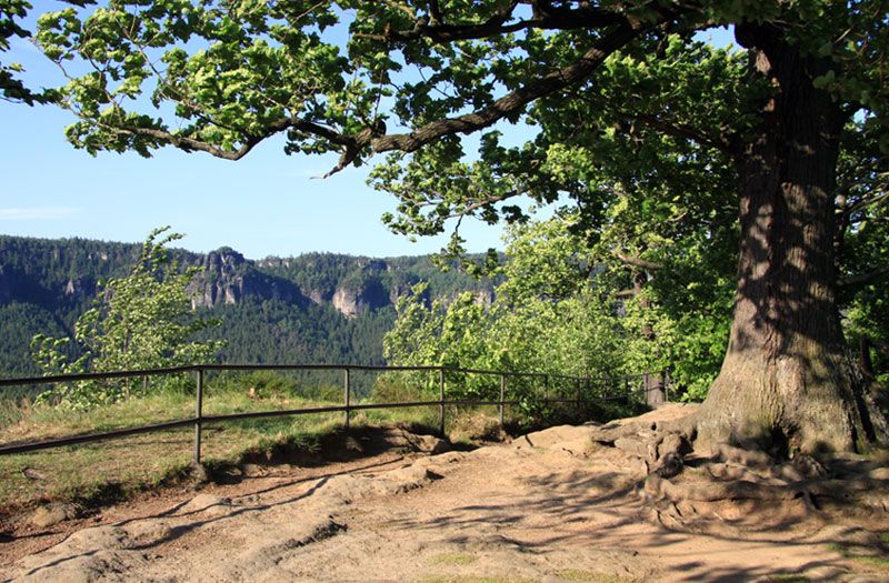 Der Winterbergstraße folgend, liegt rechtsseitig eine Aussichtsstelle, die Kipphornaussicht. Von hier schweift der Blick ins Elbtal nach Děčin im Süden und nach Bad Schandau und dem Schmilkaer Kessel im Norden. Direkt vor dem Betrachter liegt die Ebenheit mit Zirkelstein und Kaiserkrone. Den Hintergrund bilden die Zschirnsteine und der Děčiner Schneeberg. Unter dem Kipphorn kann man auf den Weg (Roter Punkt) nach links abbiegen, um nach Schmilka zu gelangen.
