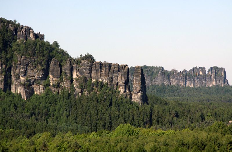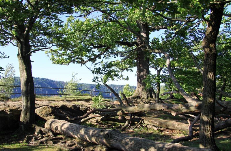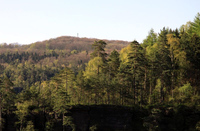Wieder auf dem Unteren Fremdenweg zurück, gibt es am Gleitmannsturm eine schöne Aussicht nach Osten auf die Bärenfangwände und den Winterstein, dem Hinteren Raubschloss. Der Untere Fremdenweg mündet in den Reitsteig und auf diesem gelangt der Wanderer nach 1 km auf den Großen Winterberg.